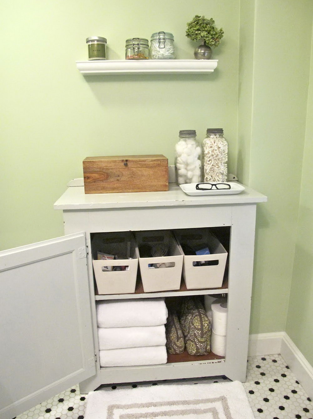 This DIY is quite simple, and yet still elegant. It involves a simple shelved cabinet. You can easily keep your folded or rolled towels in it. The glass door help to show what is in the cabinet so to create easy access to the towels. To add a little touch of creativity, you can place on top of the cabinet a jar of pebbles, flower pot or even a simple picture.