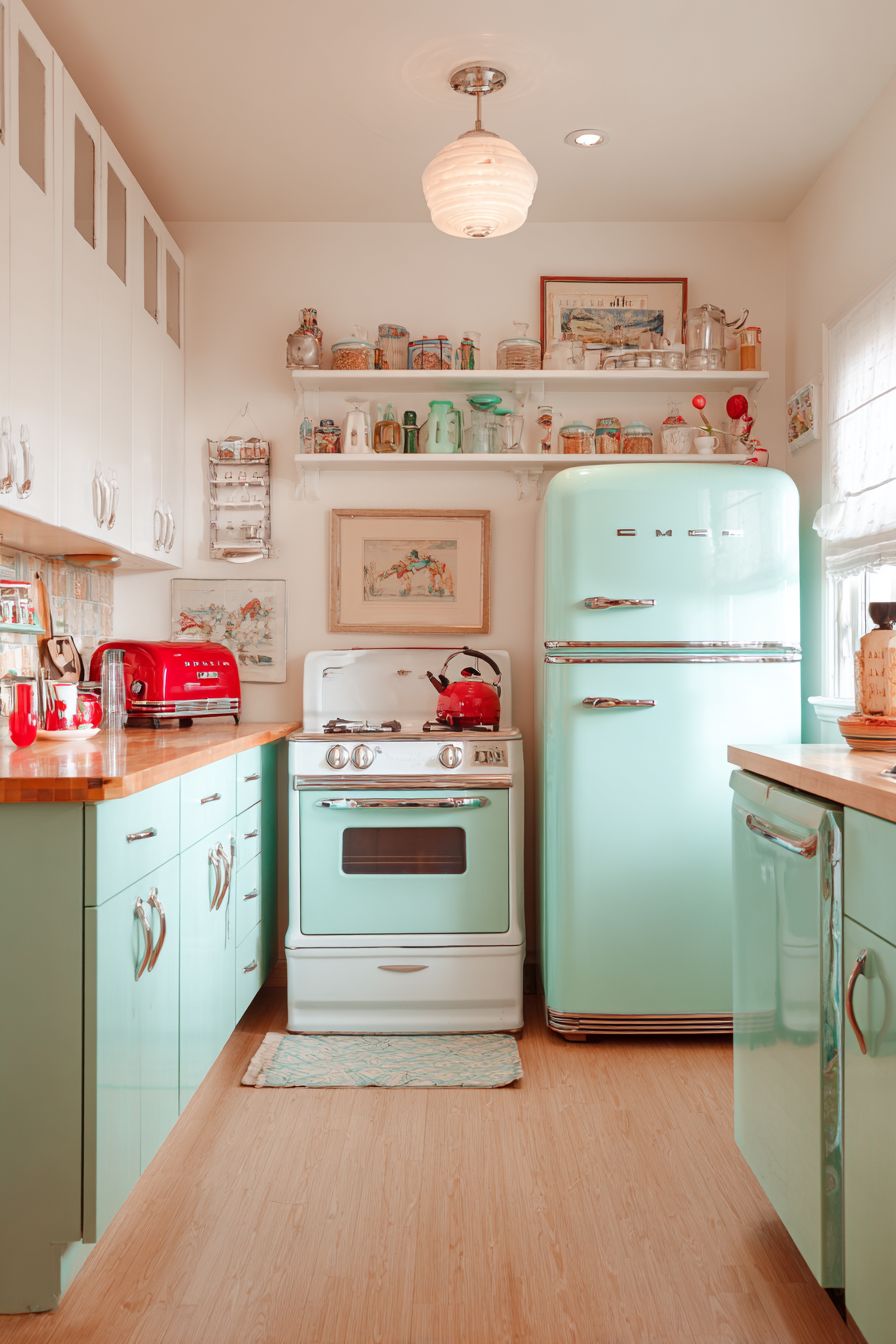 In this article, we’ll explore 18 stunning retro kitchen appliance ideas based on the images you provided. Each one highlights a unique way to incorporate vintage aesthetics into your space while keeping things practical and stylish. Whether you’re aiming for a 1950s diner vibe or a soft pastel cottage look, these ideas will inspire your next kitchen upgrade.