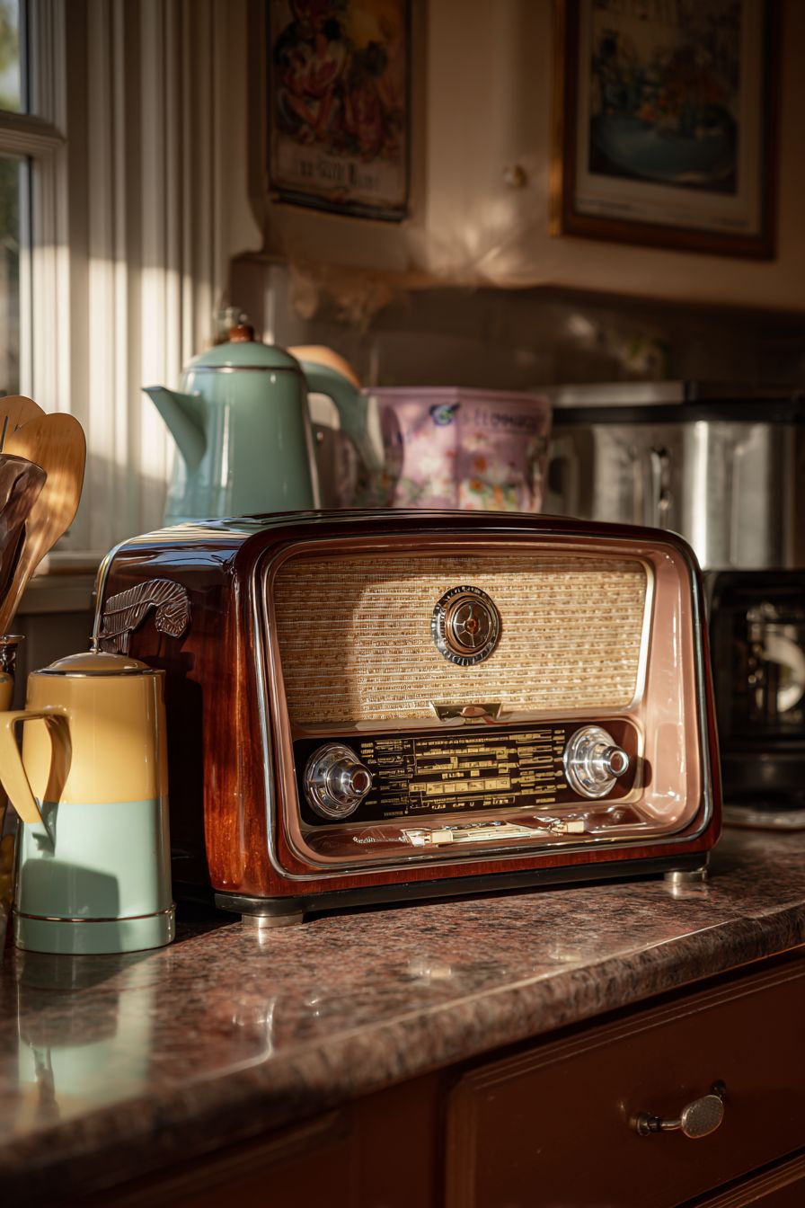 This piece enhances the nostalgic atmosphere and pairs beautifully with other vintage appliances.