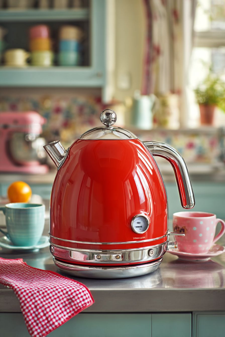 2. Bold Red Retro Kettle for a Pop of Color