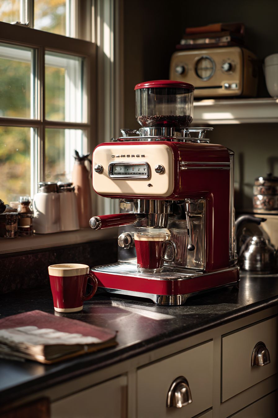 8. Retro Coffee Machine for a Warm Morning Atmosphere
